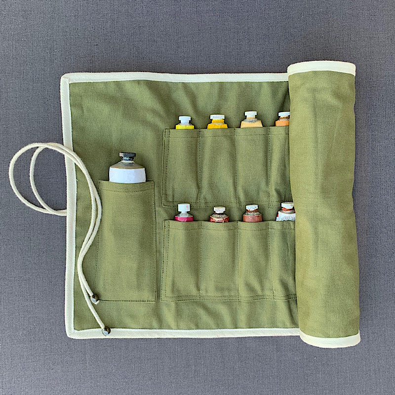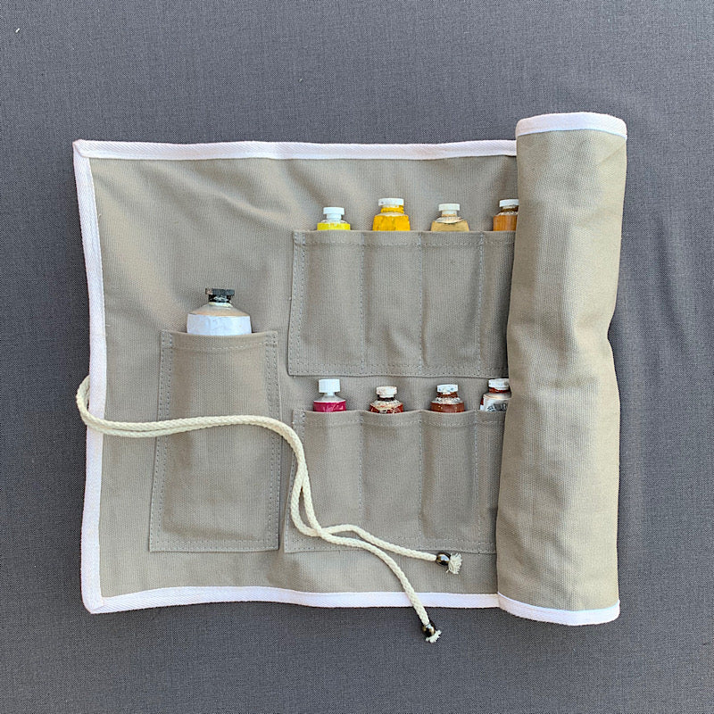 keep your paint tubes organised in the studio, outdoors and when travelling. Rolls up for convenience.