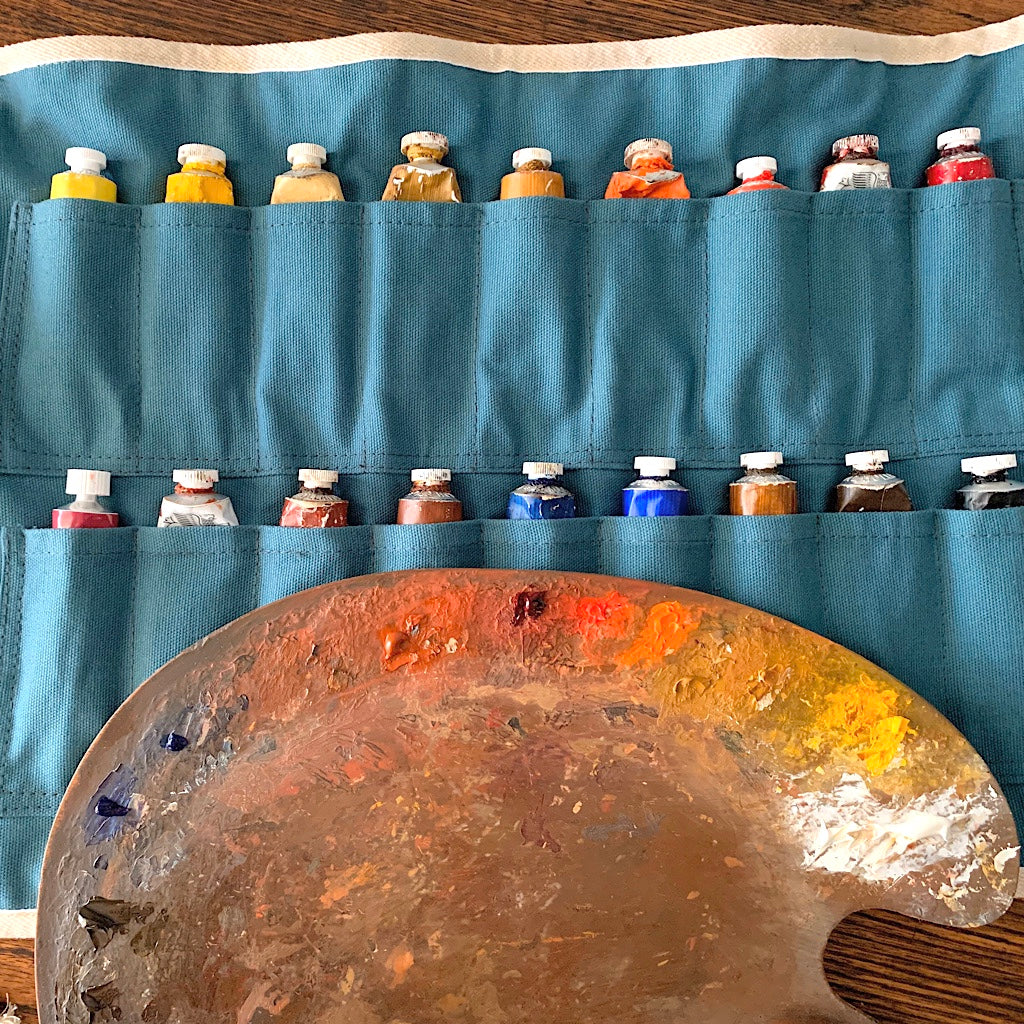 View ProductShweta made a canvas paint carrier for me in 2012. Nearly 8 years later, it is in perfect condition (except for my messy paint stains). I always pack my paints safely in it when I travel, and I have never had a tube break or leak. I also use it everyday in my studio as a way to keep my paints organized in palette order. It is so easy to grab the paint tube I want, as I never have to search around in unorganized drawers. I couldn’t recommend this product more, and I know every artist won’t want to live without it once they’ve tried it!